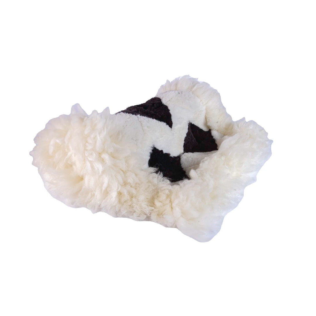 Técnica patchwork. Medidas aprox. 85 cm largo x 50 cm ancho. Confeccionado en piel de oveja natural (cuero 100%) doble piel. Curtido de manera industrial. Hecho a mano.